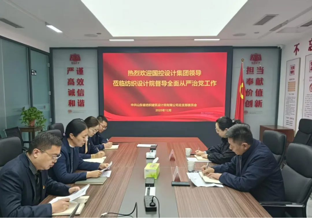 12月4日,山東省國控設計集團有限公司黨委副書記、董事、總經理王風光一行到紡織設計院開展落實全面從嚴治黨主體責任情況督導調研,并全程列席指導紡織設計院黨總支會議。